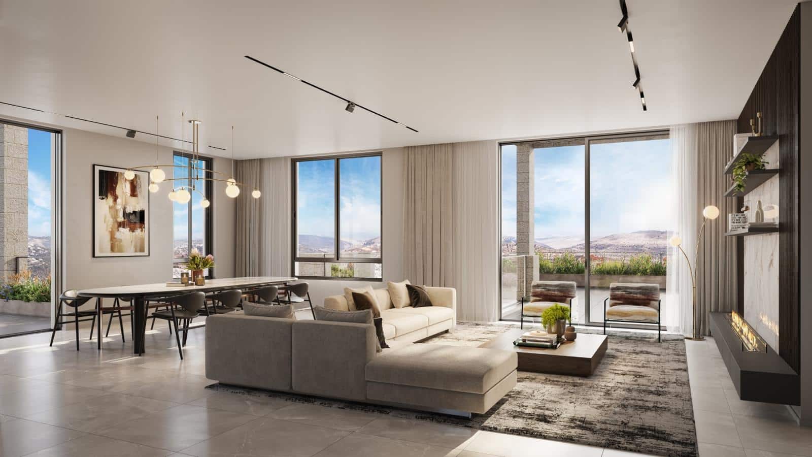 Modern Luxury: High-end boutique finishes featuring designer kitchens, massive sun-drenched windows, and spacious Sukkah balconies with panoramic views.